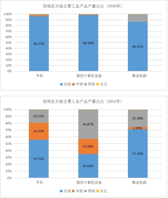 新形勢(shì)下我國(guó)高質(zhì)量推動(dòng)產(chǎn)業(yè)轉(zhuǎn)移 和優(yōu)化生產(chǎn)力布局的幾點(diǎn)思考 車(chē)璐 產(chǎn)業(yè)轉(zhuǎn)移關(guān)系著我國(guó)重大生產(chǎn)力布局和產(chǎn)業(yè)鏈、供應(yīng)鏈安全穩(wěn)定。當(dāng)前,我國(guó)制造業(yè)面臨發(fā)達(dá)國(guó)家尋求產(chǎn)業(yè)鏈“去中國(guó)化”和發(fā)展中國(guó)家產(chǎn)業(yè)發(fā)展體系逐步完善的“雙向擠壓”。高質(zhì)量推動(dòng)產(chǎn)業(yè)轉(zhuǎn)移,更有針對(duì)性地引導(dǎo)生產(chǎn)要素合理流動(dòng)和優(yōu)化配置,對(duì)優(yōu)化我國(guó)生產(chǎn)力空間布局、促進(jìn)區(qū)域協(xié)調(diào)發(fā)展具有重要意義,也是保持我國(guó)產(chǎn)業(yè)鏈供應(yīng)鏈安全穩(wěn)定、建設(shè)現(xiàn)代化產(chǎn)業(yè)體系和構(gòu)建新發(fā)展格局的迫切需要。 一、我國(guó)區(qū)域間產(chǎn)業(yè)轉(zhuǎn)移呈現(xiàn)的新趨勢(shì) 我國(guó)經(jīng)濟(jì)發(fā)展的空間不均衡引發(fā)了國(guó)內(nèi)不同區(qū)域間的產(chǎn)業(yè)轉(zhuǎn)移,這種區(qū)際產(chǎn)業(yè)轉(zhuǎn)移既是區(qū)域間要素稟賦動(dòng)態(tài)變化的體現(xiàn),也是促進(jìn)欠發(fā)達(dá)地區(qū)發(fā)展的重要路徑。近年來(lái),國(guó)內(nèi)產(chǎn)業(yè)轉(zhuǎn)移層級(jí)穩(wěn)步提升,從勞動(dòng)密集型產(chǎn)業(yè)的單向轉(zhuǎn)移,逐漸呈現(xiàn)出綜合轉(zhuǎn)移、雙向轉(zhuǎn)移等新趨勢(shì)。 (一)中西部地區(qū)承接傳統(tǒng)產(chǎn)業(yè)轉(zhuǎn)移和產(chǎn)業(yè)升級(jí)并行 我國(guó)產(chǎn)業(yè)轉(zhuǎn)移的結(jié)構(gòu)不斷升級(jí),中西部地區(qū)除主要承接?xùn)|部地區(qū)調(diào)整優(yōu)化的勞動(dòng)密集型產(chǎn)業(yè)外,還積極利用產(chǎn)業(yè)基礎(chǔ)和資源稟賦優(yōu)勢(shì),加大電子信息等資本密集型和技術(shù)密集型產(chǎn)業(yè)承接力度,整體呈現(xiàn)出產(chǎn)業(yè)轉(zhuǎn)移與產(chǎn)業(yè)升級(jí)并行趨勢(shì)。近年來(lái),戰(zhàn)略性新興產(chǎn)業(yè)也開(kāi)始向中西部核心城市集聚,如合肥芯片產(chǎn)業(yè)、武漢光纖通信產(chǎn)業(yè)、西安半導(dǎo)體產(chǎn)業(yè)、重慶新能源汽車(chē)產(chǎn)業(yè)等。2010-2022年,我國(guó)東部地區(qū)手機(jī)、微型計(jì)算機(jī)、集成電路等主要工業(yè)產(chǎn)品產(chǎn)量占全國(guó)比重分別下降40、63和15個(gè)百分點(diǎn);而中部地區(qū)三種產(chǎn)品占比分別上升23、21和3個(gè)百分點(diǎn),西部地區(qū)三種產(chǎn)品占比分別上升18、42和12個(gè)百分點(diǎn)。 數(shù)據(jù)來(lái)源:根據(jù)《中國(guó)統(tǒng)計(jì)年鑒》《中國(guó)工業(yè)統(tǒng)計(jì)年鑒》相關(guān)數(shù)據(jù)整理計(jì)算。 圖1 2010-2022年我國(guó)分區(qū)域電子信息類(lèi)主要產(chǎn)品產(chǎn)量占比 (二)資源環(huán)境要素成為東部地區(qū)產(chǎn)業(yè)轉(zhuǎn)移重要考量 隨著城市化的不斷推進(jìn)和經(jīng)濟(jì)的快速發(fā)展,東部地區(qū)能源、土地、環(huán)境等要素供給日趨緊張,碳排放的限制也會(huì)加快部分高耗能產(chǎn)業(yè)向原材料豐富、新能源富集的中西部地區(qū)疏散轉(zhuǎn)移。近年來(lái),全國(guó)電解鋁“北鋁南移、東鋁西移”,云南依托可再生能源資源優(yōu)勢(shì)主動(dòng)承接電解鋁產(chǎn)能轉(zhuǎn)移,全省電解鋁產(chǎn)能接近全國(guó)的五分之一。全國(guó)實(shí)施“東數(shù)西算”工程,8個(gè)國(guó)家算力樞紐節(jié)點(diǎn)西部地區(qū)占據(jù)5個(gè),10個(gè)國(guó)家數(shù)據(jù)中心集群西部地區(qū)占據(jù)7個(gè)。此外,玻璃、塑料及化工產(chǎn)品產(chǎn)業(yè),受東部地區(qū)環(huán)境容量和環(huán)境監(jiān)管限制而向中西部地區(qū)轉(zhuǎn)移。2010-2022年,東部地區(qū)平板玻璃、初級(jí)形態(tài)的塑料、化學(xué)農(nóng)藥原藥、乙烯、純堿、燒堿等主要工業(yè)產(chǎn)品產(chǎn)量占全國(guó)比重分別下降14、14、2、7、11和5個(gè)百分點(diǎn),而西部地區(qū)占比分別上升5、13、4、0.2、3和7個(gè)百分點(diǎn)。 數(shù)據(jù)來(lái)源:根據(jù)《中國(guó)統(tǒng)計(jì)年鑒》《中國(guó)工業(yè)統(tǒng)計(jì)年鑒》相關(guān)數(shù)據(jù)整理計(jì)算。 圖2 2010-2022年我國(guó)分區(qū)域原材料類(lèi)主要產(chǎn)品產(chǎn)量占比 (三)東中西及東北地區(qū)產(chǎn)業(yè)雙向轉(zhuǎn)移和區(qū)域間合作 隨著我國(guó)基礎(chǔ)設(shè)施建設(shè)大發(fā)展,中西部交通運(yùn)輸條件與東部的差距在不斷縮小,特別是互聯(lián)網(wǎng)、移動(dòng)通信等新型基礎(chǔ)設(shè)施的發(fā)展,使得企業(yè)可以在不同地區(qū)通過(guò)遠(yuǎn)程辦公、在線(xiàn)會(huì)議等進(jìn)行業(yè)務(wù)協(xié)作和管理,“遠(yuǎn)程研發(fā)+異地中試+異地生產(chǎn)+異地操作”等模式應(yīng)運(yùn)而生。以汽車(chē)產(chǎn)業(yè)為例,國(guó)內(nèi)知名車(chē)企相繼進(jìn)入中西部,在重慶、成都、武漢、長(zhǎng)沙、鄭州等地建成了相當(dāng)規(guī)模的整車(chē)和零部件生產(chǎn)基地,但其研發(fā)中心依然設(shè)置在東部沿海發(fā)達(dá)地區(qū)。同時(shí),中西部和東北地區(qū)也可以通過(guò)在東部地區(qū)設(
