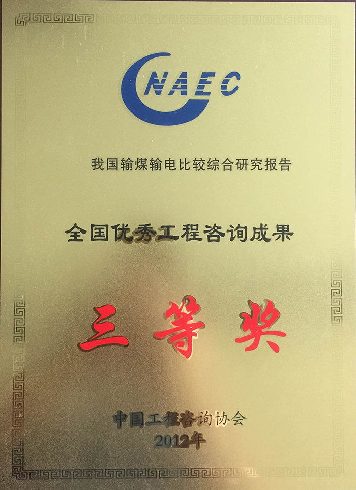 全國優(yōu)秀工程咨詢成果三等獎(jiǎng)(2012年)
