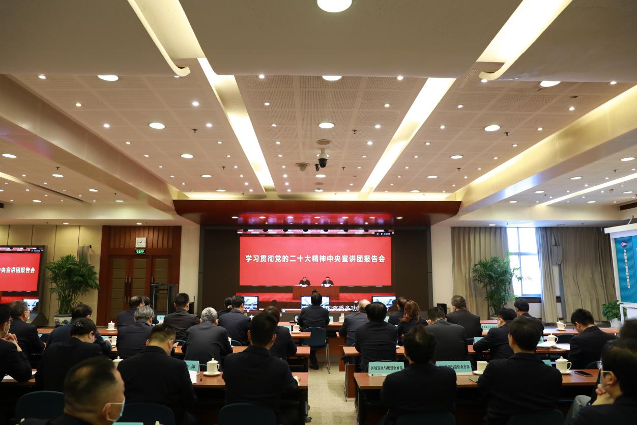按照黨中央統(tǒng)一安排,11月8日,學(xué)習(xí)貫徹黨的二十大精神中央宣講團(tuán)報(bào)告會(huì)在國(guó)資國(guó)企系統(tǒng)舉行。中央宣講團(tuán)成員、中央政策研究室副主任田培炎作了宣講報(bào)告。國(guó)務(wù)院國(guó)資委黨委書(shū)記、主任郝鵬主持報(bào)告會(huì)。報(bào)告會(huì)采取現(xiàn)場(chǎng)和視頻相結(jié)合的方式舉行。中咨公司總部及所屬企業(yè)開(kāi)設(shè)10個(gè)分會(huì)場(chǎng)同步聆聽(tīng)宣講。