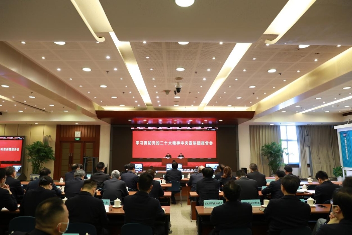 報(bào)告會(huì)上,田培炎從黨的二十大的重大意義、過(guò)去5年的工作和新時(shí)代10年的偉大變革、馬克思主義中國(guó)化時(shí)代化、中國(guó)式現(xiàn)代化、全面建設(shè)社會(huì)主義現(xiàn)代化國(guó)家的目標(biāo)任務(wù)、堅(jiān)持黨的全面領(lǐng)導(dǎo)和全面從嚴(yán)治黨等方面,對(duì)黨的二十大精神進(jìn)行系統(tǒng)宣講和闡釋。他表示,“兩個(gè)確立”是黨在新時(shí)代取得的重大政治成果,是推動(dòng)黨和國(guó)家事業(yè)取得歷史性成就、發(fā)生歷史性變革的決定性因素。要深刻領(lǐng)悟“兩個(gè)確立”的決定性意義,切實(shí)把“兩個(gè)確立”的政治共識(shí)轉(zhuǎn)化為“兩個(gè)維護(hù)”的實(shí)際行動(dòng),不折不扣貫徹落實(shí)黨的路線方針政策,全面學(xué)習(xí)、全面把握、全面落實(shí)黨的二十大精神。