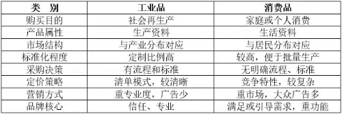 表1 工業(yè)品與消費(fèi)品的區(qū)別
