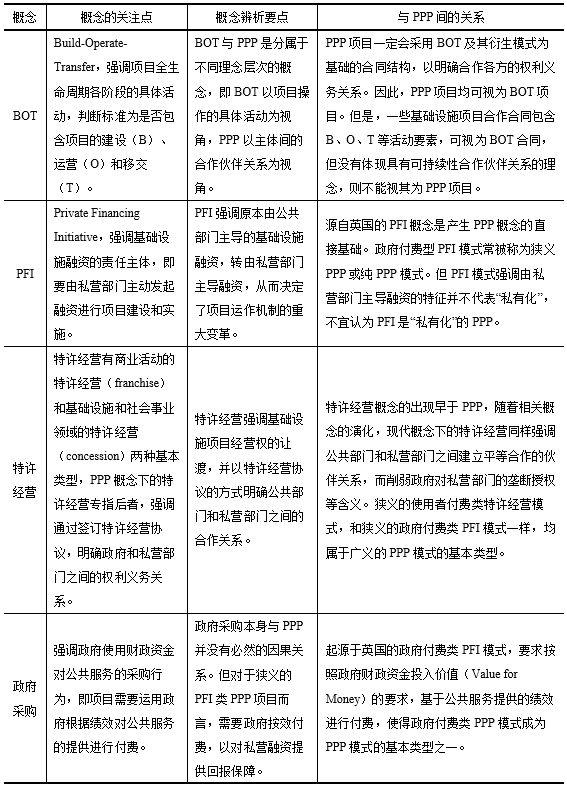 基礎(chǔ)設(shè)施采用PPP模式的可持續(xù)應(yīng)用及實(shí)現(xiàn)路徑 李開(kāi)孟 伍迪 PPP模式廣泛用于基礎(chǔ)設(shè)施和公共服務(wù)領(lǐng)域,但是不同國(guó)家和相關(guān)國(guó)際組織對(duì)PPP模式的內(nèi)涵及其特征存在不同的理解,而且PPP模式的基本特征隨著時(shí)代的發(fā)展也在不斷發(fā)生變化。本文系統(tǒng)梳理了PPP與相關(guān)概念的關(guān)系,總結(jié)世界各國(guó)PPP模式應(yīng)用的主要經(jīng)驗(yàn),基于目標(biāo)視角提出不同類型PPP模式的主要特征及其演進(jìn)規(guī)律,并為政策制定者和項(xiàng)目決策者提出相關(guān)建議。 一、引言 基礎(chǔ)設(shè)施與公共服務(wù)的不合理供給可能會(huì)產(chǎn)生政府失靈和市場(chǎng)失靈問(wèn)題。為了解決傳統(tǒng)的完全由政府部門(mén)提供公共服務(wù)模式下的政府失靈問(wèn)題,以及完全由企業(yè)提供公共服務(wù)模式下的市場(chǎng)失靈問(wèn)題,世界各國(guó)一直在探索如何發(fā)揮公共部門(mén)和私營(yíng)部門(mén)各自的優(yōu)勢(shì),建立合作伙伴關(guān)系,進(jìn)行體制機(jī)制的改革創(chuàng)新,提升公共服務(wù)供給的質(zhì)量和效率[1]。這種探索催生了PPP模式的形成和發(fā)展,對(duì)于推動(dòng)基礎(chǔ)設(shè)施建設(shè)領(lǐng)域投融資體制的改革創(chuàng)新發(fā)揮了重要作用[2][3]。PPP模式雙方合作的核心目的,就是既要發(fā)揮好公共部門(mén)的職能,又要充分發(fā)揮市場(chǎng)配置資源的積極作用[4],從而提升公共服務(wù)的供給質(zhì)量和效率[5]。 伴隨PPP理念的實(shí)踐應(yīng)用,也產(chǎn)生了越來(lái)越多不同的具體PPP操作模式,這為項(xiàng)目決策者提供很大選擇空間的同時(shí),也增加了選擇的難度[6]。不同國(guó)家、不同領(lǐng)域、不同項(xiàng)目往往會(huì)有模式選擇的不同偏好,選擇何種模式往往取決于各國(guó)PPP政策執(zhí)行的目標(biāo)和目的[7]。同時(shí),PPP內(nèi)涵和采用PPP模式目標(biāo)的不斷延伸,造成了PPP與一些其他相關(guān)既有概念的混淆,例如BOT、PFI、特許經(jīng)營(yíng)、政府采購(gòu)等,這也給政策制定者和項(xiàng)目決策者提出了更高的要求[8]。因此,針對(duì)上述問(wèn)題,本文首先系統(tǒng)梳理PPP與相關(guān)概念的關(guān)系,總結(jié)PPP模式在一些代表性國(guó)家推廣應(yīng)用的實(shí)踐經(jīng)驗(yàn)。在此基礎(chǔ)上,從政府采用PPP模式目標(biāo)優(yōu)先次序選擇的視角,提出PPP模式的三個(gè)基礎(chǔ)類型,最后總結(jié)三個(gè)類型PPP模式的基本特點(diǎn)、代際演進(jìn)及實(shí)踐應(yīng)用的對(duì)策建議。 二、PPP相關(guān)概念辨析 (一)PPP與BOT PPP項(xiàng)目倡導(dǎo)的“可持續(xù)伙伴關(guān)系”理念[9][10]可以通過(guò)多種具體模式來(lái)實(shí)現(xiàn),BOT模式是其中最常見(jiàn)的具體模式之一。但是,并不能認(rèn)為BOT和PPP兩個(gè)概念相同,事實(shí)上,從概念層次來(lái)看,BOT和PPP實(shí)際上是兩個(gè)層次視角下的不同概念。BOT概念的視角是從項(xiàng)目全生命周期的主要流程視角下進(jìn)行定義的,強(qiáng)調(diào)項(xiàng)目要經(jīng)過(guò)建設(shè)(Build)、運(yùn)營(yíng)(Operate)和移交(Transfer)等主要流程,因此,無(wú)論任何類型回報(bào)機(jī)制的PPP項(xiàng)目,都可以采用BOT模式類型的合同進(jìn)行項(xiàng)目建設(shè)、運(yùn)營(yíng)、移交等流程中相關(guān)權(quán)利義務(wù)的約定,在這個(gè)流程視角下,BOT又衍生了很多種模式,如BOOT、TOT、ROT、BOO等;與之相比,PPP則強(qiáng)調(diào)合作雙方是否能夠建立一種可持續(xù)的“合作伙伴關(guān)系”(Partnerships),其概念是從項(xiàng)目的利益相關(guān)者之間關(guān)系的視角進(jìn)行定義的。 對(duì)于BOT項(xiàng)目而言,如果在BOT合同中的設(shè)計(jì)考慮了項(xiàng)目利益相關(guān)者之間可持續(xù)的合作伙伴關(guān)系,即充分體系了PPP概念所倡導(dǎo)的理念,那么這樣的BOT項(xiàng)目同時(shí)也就是PPP項(xiàng)目;如果項(xiàng)目的BOT合同僅約定了項(xiàng)目在運(yùn)作的建設(shè)、運(yùn)營(yíng)、移交各流程中每個(gè)階段的具體活動(dòng),而忽視了構(gòu)建項(xiàng)目參與主體之間的長(zhǎng)期合作伙伴關(guān)系,例如忽視了雙方的利益與風(fēng)險(xiǎn)分擔(dān)機(jī)制,那么這樣的交易結(jié)構(gòu)在理念上不能稱之為PPP項(xiàng)目,這種BOT也應(yīng)該是推廣應(yīng)用PPP模式所應(yīng)盡量避免的[11]。 邏輯上,所有類型的PPP項(xiàng)目都可以采用BOT(包含其各種衍生模式)的合同結(jié)構(gòu),因此就字面而言都可以稱之為BOT項(xiàng)目[12]。但是,并不是所有類型的BOT項(xiàng)目均能符合PPP的理念要求,而被稱之為PPP項(xiàng)目。 (二)PPP與PFI PFI(Private Financing Initiative)基本含義就是強(qiáng)調(diào)要由私營(yíng)部門(mén)在基礎(chǔ)設(shè)施融資中發(fā)揮主導(dǎo)作用,由私營(yíng)部門(mén)主導(dǎo)進(jìn)行項(xiàng)目建設(shè),具體可以從狹義和廣義的不同角度進(jìn)行理解。就廣義而言,凡是屬于私營(yíng)部門(mén)主導(dǎo)融資的基礎(chǔ)設(shè)施市場(chǎng)化運(yùn)作項(xiàng)目均屬于PFI項(xiàng)目;就狹義而言,PFI項(xiàng)目專指起源于英國(guó)的政府付費(fèi)型PPP模式,這類項(xiàng)目應(yīng)該按照