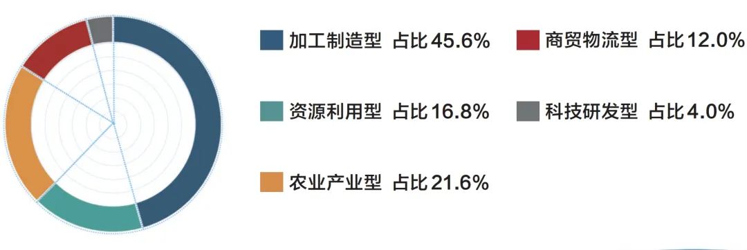 經(jīng)貿(mào)合作區(qū)以加工制造型為主,科技研發(fā)型相對(duì)較少。125 家境外經(jīng)貿(mào)合作區(qū)中,加工制造型數(shù)量最多,為57家,占比45.6%。