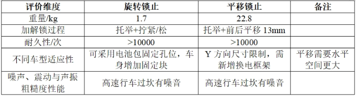 表1 旋轉(zhuǎn)鎖止和前后平移鎖止機(jī)構(gòu)性能對比