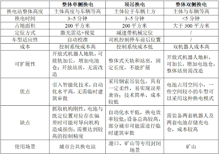 乘用車各種換電模式優(yōu)缺點(diǎn)如表2。