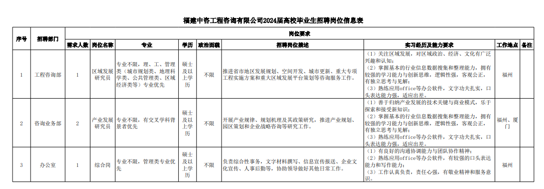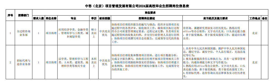 中國國際工程咨詢有限公司所屬二級企業(yè)2024年校園招聘公告 | ||||