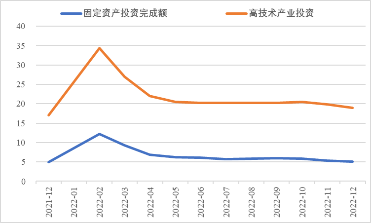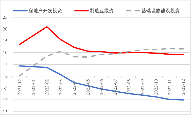 2022年,面對復雜嚴峻的國際環(huán)境和國內(nèi)疫情挑戰(zhàn),我國投資整體表現(xiàn)較強韌性,對穩(wěn)定經(jīng)濟基本盤發(fā)揮了壓艙石作用?;A設施和部分制造業(yè)成為穩(wěn)投資的重點領域,中西部地區(qū)投資增長動能強勁。同時,制造業(yè)承壓加劇、房地產(chǎn)投資下行、地方債高壓、社融需求走弱等突出問題制約投資持續(xù)穩(wěn)定增長,穩(wěn)投資壓力仍然較大。做好2023年投資促進工作,關鍵是把擴大有效投資同優(yōu)化供給結構有機結合起來,持續(xù)擴大高技術產(chǎn)業(yè)投資,多舉措穩(wěn)定房地產(chǎn)投資,更好發(fā)揮政府投資的引導作用,充分釋放社會投資需求潛能。 一、固定資產(chǎn)投資整體運行情況 (一)整體投資韌性超出預期,民間投資呈下行趨勢 2022年1—12月,我國固定資產(chǎn)投資(不含農(nóng)戶,下同)572138億元,同比增長5.1%。一季度投資增速達到9.3%的年內(nèi)高點,上半年、前三季度分別降至6.1%、5.9%,年初投資增速較高的重要原因是2022年專項債部分限額提前下達等系列政策發(fā)揮效果,之后受國外地緣政治沖突、國內(nèi)疫情多點散發(fā)等因素影響,投資增速有所下降,但降幅逐季收窄。一季度、上半年、前三季度、全年固定資產(chǎn)投資增速分別較同期國內(nèi)生產(chǎn)總值增速高了4.5個、3.6個、2.9個和2.1個百分點,投資成為當前穩(wěn)定宏觀經(jīng)濟大盤的關鍵力量。 圖1 全國固定資產(chǎn)投資增速 (累計同比,%) 數(shù)據(jù)來源:國家統(tǒng)計局 1—12月,我國固定資產(chǎn)投資三年平均增速為4.3%,低于2019年同期1.1個百分點,全面恢復到疫情前水平仍需一定時間。尤其是民間投資受疫情沖擊較為嚴重,復蘇難度較大。一季度、上半年、前三季度、全年民間投資分別同比增長8.4%、3.5%、2%、0.9%,低于整體投資增速0.9個、2.6個、3.9個、4.2個百分點,與整體投資增速的差距逐季拉大。從占比看,截至12月底民間投資累計占固定資產(chǎn)投資的比重已降至54.2%,低于2019年同期2.2個百分點。 圖2 民間投資增速及占比(%) 數(shù)據(jù)來源:國家統(tǒng)計局,Wind數(shù)據(jù)庫 (二)基礎設施、制造業(yè)投資支撐作用明顯,房地產(chǎn)市場持續(xù)低迷 制造業(yè)投資在外需帶動和政策支撐下展現(xiàn)較強韌性,2022年1—12月制造業(yè)投資同比增長9.1%,比整體投資高4個百分點。在內(nèi)需受疫情影響明顯收縮的情況下,制造業(yè)投資超預期增長很大程度上得益于外需對出口的拉動。我國全年貨物出口額累計同比增長10.5%,裝備制造、消費品制造等領域海外訂單持續(xù)旺盛,機電產(chǎn)品占進出口總額的49.1%,汽車出口大幅增長82.2%。技改投資繼續(xù)發(fā)揮對制造業(yè)投資的拉動作用。1—11月,制造業(yè)企業(yè)技改投資同比增長9.1%,占全部制造業(yè)投資的比重達40.9%。 基礎設施投資在增加政策性開發(fā)性金融工具額度、用好專項債等融資支持政策以及各地區(qū)各部門積極貫徹落實穩(wěn)增長系列政策推動下,連續(xù)8個月回升,1—12月同比增長9.4%,高于全部投資增速4.3個百分點。其中,水利管理業(yè)投資和公共設施管理業(yè)投資分別大幅增長13.6%、10.1%。 表1 1-12月我國各行業(yè)固定資產(chǎn)投資情況 2022年受需求走弱影響,房地產(chǎn)開發(fā)投資增速持續(xù)放緩,一季度僅同比增長0.7%,二季度開始滑落至負增長區(qū)間。1—12月我國房地產(chǎn)開發(fā)投資同比下降10%,降幅較前三季度、上半年分別擴大2個、4.6個百分點,跌幅持續(xù)加深,拖累固定資產(chǎn)投資整體增長。房企土地購置費、施工面積、新開工面積等指標均出現(xiàn)持續(xù)大幅下降。1—12月,房地產(chǎn)開發(fā)景氣指數(shù)均位于100以下,且自2月以來持續(xù)走低。 圖3 三大領域固定資產(chǎn)投資增速 (累計同比,%) 數(shù)據(jù)來源:國家統(tǒng)計局,Wind數(shù)據(jù)庫 高技術產(chǎn)業(yè)投資引領作用持續(xù)增強。在投資整體下行壓力加大的情況下,高技術產(chǎn)業(yè)投資逆勢而上,穩(wěn)投資引領作用持續(xù)顯現(xiàn)。2022年高技術產(chǎn)業(yè)投資同比增長18.9%,比全部投資增速高13.8個百分點。分類別看,高技術制造業(yè)投資同比增長22.2%,比制造業(yè)整體投資高了13.1個百分點,其中電子及通信設備制造業(yè)投資增長27.2%,醫(yī)療儀器設備及儀器儀表制造業(yè)投資增長27.6%,電子、醫(yī)藥制造業(yè)投資大幅增加;高技術服務業(yè)投資同比增長12.1%,其中科技成果轉化服務業(yè)投資增長26.4%,研發(fā)設計服務業(yè)投資增長19.8%,企業(yè)研發(fā)投入顯著加大。 圖4 高技術產(chǎn)業(yè)投資增速對比整體投資增速 (累計同比,%) 數(shù)據(jù)來源:國家統(tǒng)計局,Wind數(shù)據(jù)庫 (三)中西部地區(qū)投資增長動力較強,東北地區(qū)增速止跌回升 2022年1—12月,東部地區(qū)投資同比增長3.6%,較前三季度、上半年、一季度分別回落0.7個、0.9個、5.9個百分點;中部地區(qū)投資增長8.9%,較前三季度、上半年、一季度分別回落1.1個、1.8個、5.5個百分點;西部地區(qū)投資增長4.7%,較前三季度、上半年、一季度分別回落2個、3.3個、6.6個百分點;東北地區(qū)投資增長1.2%,較前三季度、上半年、一季度分別提升1個、2.1個、2.6個百分點??偟膩砜矗胁亢臀鞑康貐^(qū)投資保持較快增長,東部地區(qū)增速較低,東
