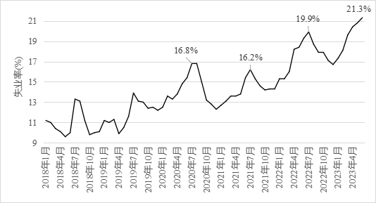 習近平總書記多次強調(diào),就業(yè)是最大的民生,青年就業(yè)工作要擺在更加突出位置。青年是國家的未來與希望,就業(yè)是青年群體最普遍、最迫切的需求之一。當前,我國16~24歲青年失業(yè)率連創(chuàng)新高,不利于經(jīng)濟社會穩(wěn)定發(fā)展。中咨公司課題組研究指出,當前青年失業(yè)率主要由經(jīng)濟增速和通脹水平回落以及供需錯配等因素造成,要充分認識到發(fā)展是解決青年失業(yè)問題的根本動力,做好職業(yè)教育和高等教育“兩頭抓”、不斷豐富就業(yè)信息來源和拓寬就業(yè)渠道、多途徑為失業(yè)青年提供保障,促進青年更好成長、更快發(fā)展。 一、青年失業(yè)率處于近年來高位 (一)當前青年失業(yè)率約為疫情前的兩倍,成為拖累整體失業(yè)率的主因。統(tǒng)計局數(shù)據(jù)顯示,疫情前我國青年失業(yè)率均值穩(wěn)定在10%左右,目前已經(jīng)超過20%。2020年青年失業(yè)率受疫情沖擊,月度峰值升至16.8%,2021年的月度峰值略微回落至16.2%,2022年全年的均值高達17.5%,為社會整體失業(yè)率的3.15倍,其中月度峰值達19.9%,創(chuàng)有記錄以來新高。今年4月,青年失業(yè)率首次突破20%,5月升至20.8%,6月份繼續(xù)攀升至21.3%,環(huán)比上升0.5個百分點,已經(jīng)連續(xù)3個月創(chuàng)記錄新高,超過當月社會整體失業(yè)率的4倍。 圖1 全國16~24歲人口城鎮(zhèn)調(diào)查失業(yè)率變動趨勢圖 (二)失業(yè)率高于全球平均水平及主要經(jīng)濟體。2022年全球青年失業(yè)率平均為14.9%,其中歐洲和中亞地區(qū)為16.4%,亞太地區(qū)為14.9%,北美地區(qū)為8.3%,美國的青年失業(yè)率在2020年4月達到27.4%的峰值,但2022年已經(jīng)穩(wěn)定控制在8.5%以下,全球主要地區(qū)的青年就業(yè)形勢好于我國。 (三)低學歷人群是失業(yè)青年的主力,面臨更大的失業(yè)風險。相較于高校畢業(yè)生,高中及以下的低學歷青年人數(shù)更多,成為影響當前青年失業(yè)率的重要因素。根據(jù)第七次人口普查數(shù)據(jù),當前我國16~24歲的人口數(shù)量剔除在校生后,高中及以下低學歷就業(yè)人數(shù)占比近70%。按照青年人口數(shù)和調(diào)查失業(yè)率推算,青年失業(yè)人口可能超過2400萬人,2022年高校畢業(yè)生剔除繼續(xù)升學人數(shù)后的求職人數(shù)約為950萬人,表明當前失業(yè)青年中低學歷人群的影響不容忽視。此外,2022年青年農(nóng)民工的數(shù)量為2800萬人,該人群的工作崗位不穩(wěn)定更易受經(jīng)濟波動影響,值得引起更多關(guān)注。 圖2 全國青年失業(yè)人數(shù)與高校畢業(yè)生人數(shù)對比圖 二、原因分析 (一)經(jīng)濟增速和通脹水平回落推高失業(yè)率。一方面,疫情以來經(jīng)濟增速回落推高失業(yè)率。奧肯定律揭示出宏觀經(jīng)濟增速和失業(yè)率呈反向關(guān)系,我國目前的經(jīng)濟增速仍未恢復至疫情前的水平,2023年2季度實際GDP環(huán)比增速出現(xiàn)回落,低于預期。同時,我國經(jīng)濟面臨增速換擋,自然會出現(xiàn)失業(yè)率的走高,直接表現(xiàn)為作為初入就業(yè)市場的青年群體就業(yè)難現(xiàn)象。另一方面,通脹水平持續(xù)下滑短期內(nèi)抑制就業(yè)。近期國內(nèi)的通脹水平持續(xù)走低,數(shù)據(jù)顯示,自2023年3月開始,我國CPI已經(jīng)連續(xù)4個月低于1%,6月份,CPI已經(jīng)降至0%,PPI同比下降5.4%,PPI同比降幅連續(xù)6個月不斷擴大。根據(jù)菲力普斯曲線,短期內(nèi)失業(yè)率與通貨膨脹率之間存在明顯的交替關(guān)系,因此,國內(nèi)的低通脹進一步推高了失業(yè)率。 圖3 短期內(nèi)失業(yè)率與通貨膨脹率之間的關(guān)系 (二)供需錯配進一步加劇失業(yè)風險。一是部分行業(yè)用人需求出現(xiàn)萎縮。根據(jù)普查數(shù)據(jù),有近50%的青年人就業(yè)主要集中在制造業(yè)、批發(fā)零售、住宿餐飲等行業(yè),但是近年來受疫情沖擊,居民消費需求恢復緩慢,住宿餐飲等服務(wù)行業(yè)收縮明顯,同時勞動密集型制造業(yè)與低端制造外遷,致使其吸納就業(yè)能力下降,對青年群體尤其是低學歷青年就業(yè)形成拖累。二是畢業(yè)生供給持續(xù)創(chuàng)新高。每年高校畢業(yè)生人數(shù)都在持續(xù)遞增,2023年高校畢業(yè)生已經(jīng)達到1158萬人,比本世紀初高出十倍之多,剔除考公、考研、出國的人數(shù),預估仍將有950萬應屆生進入職場,激烈程度每年只增不減。再加上近年外國留學人員回國求職人數(shù)上升,進一步增加了青年求職群體的就業(yè)壓力。三是結(jié)構(gòu)性矛盾突出。一方面,青年學生就業(yè)觀不實際。很多畢業(yè)生對就業(yè)環(huán)境、行業(yè)、城市的期望與實際勞動力市場提供的條件存有落差,青年不再愿意入職傳統(tǒng)的制造業(yè)工廠,甚至出現(xiàn)“3000元工廠招不到藍領(lǐng)工人,寫字樓卻可以招到大學生”的說法。并且近年來越來越多畢業(yè)生競爭有限的公職崗位,耽誤了最佳的就業(yè)時機。另一方面,知識和能力跟不上需求。在信息密集型服務(wù)業(yè)、知識密集型服務(wù)業(yè)等領(lǐng)域,眾多低學歷青年的知識儲備和能力無法滿足企業(yè)要求。此外,當前高校的教育與社會需求脫節(jié),導致人才培養(yǎng)滯后于產(chǎn)業(yè)結(jié)構(gòu)調(diào)整和市場需求變化。 三、失業(yè)率居高不