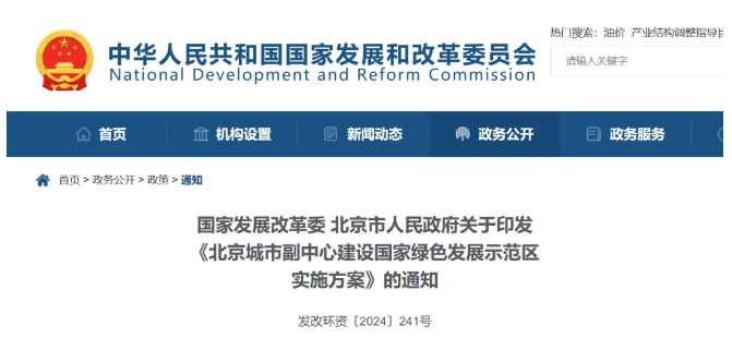 展首都綠色之翼 創(chuàng)全國示范之先 高質(zhì)量建設(shè)國家綠色發(fā)展示范區(qū) ——《北京城市副中心建設(shè)國家綠色發(fā)展示范區(qū)實(shí)施方案》解讀 張英健 木其堅(jiān) 近日,經(jīng)國務(wù)院同意,國家發(fā)展改革委、北京市人民政府聯(lián)合印發(fā)《北京城市副中心建設(shè)國家綠色發(fā)展示范區(qū)實(shí)施方案》(發(fā)改環(huán)資〔2024〕241號(hào),以下簡(jiǎn)稱《實(shí)施方案》),明確了北京城市副中心綠色高質(zhì)量發(fā)展、打造人與自然和諧共生樣板的工作路徑,為北京城市副中心有序承接中心城區(qū)非首都功能疏解、推進(jìn)首都城市功能重組和布局優(yōu)化,建設(shè)和諧、宜居、美麗的綠色發(fā)展高地繪制了總體藍(lán)圖,對(duì)于推動(dòng)北京“新兩翼”建設(shè)取得更大突破,促進(jìn)京津冀協(xié)同發(fā)展具有重要而深遠(yuǎn)的意義。 1、踐行習(xí)近平生態(tài)文明思想是北京城市副中心建設(shè)的根本遵循 規(guī)劃建設(shè)北京城市副中心,與雄安新區(qū)形成北京的“新兩翼”,是以習(xí)近平同志為核心的黨中央作出的重大決策部署,是千年大計(jì)、國家大事。早在2016年北京城市副中心研究部署規(guī)劃階段,習(xí)近平總書記就強(qiáng)調(diào),北京城市副中心建設(shè)要牢固樹立并貫徹落實(shí)創(chuàng)新、協(xié)調(diào)、綠色、開放、共享的發(fā)展理念,構(gòu)建藍(lán)綠交織、清新明亮、水城共融的生態(tài)城市布局,著力打造國際一流和諧宜居之都示范區(qū),建成綠色城市、森林城市、海綿城市、智慧城市。2021年8月,國務(wù)院印發(fā)《關(guān)于支持北京城市副中心高質(zhì)量發(fā)展的意見》,明確提出在北京城市副中心建設(shè)國家綠色發(fā)展示范區(qū),堅(jiān)持將綠色發(fā)展理念融入經(jīng)濟(jì)社會(huì)發(fā)展全過程。近年來,京津冀3省市切實(shí)履行主體責(zé)任,中央有關(guān)部門和單位大力支持配合,疏解北京非首都功能初見成效,北京城市副中心高質(zhì)量發(fā)展步伐加快,“軌道上的京津冀”加速形成,北京城市副中心美麗宜居水平大幅提升,科技創(chuàng)新和產(chǎn)業(yè)融合發(fā)展水平持續(xù)提升,人民群眾獲得感顯著增強(qiáng)。實(shí)踐證明,黨中央關(guān)于北京城市副中心的安排部署,特別是堅(jiān)持將綠色發(fā)展作為城市發(fā)展底色的決策部署科學(xué)合理、順應(yīng)民心,符合我國新時(shí)代高質(zhì)量發(fā)展需要。 北京城市副中心肩負(fù)著有序承接中心城區(qū)非首都功能疏解、推進(jìn)首都城市功能重組和布局優(yōu)化、探索人口經(jīng)濟(jì)密集地區(qū)優(yōu)化開發(fā)模式的艱巨任務(wù)。與雄安平地建新城不同,北京城市副中心本身已有城市建設(shè)的基礎(chǔ),如何在既有基礎(chǔ)上脫胎換骨、綠色升級(jí),打造一個(gè)不一樣的和諧宜居之城,關(guān)鍵是必須牢牢把握住習(xí)近平生態(tài)文明思想這個(gè)最核心的思想武器?!秾?shí)施方案》認(rèn)真貫徹黨中央、國務(wù)院決策部署,時(shí)時(shí)處處踐行綠水青山就是金山銀山理念,牢固樹立節(jié)約集約循環(huán)利用的資源觀,以實(shí)現(xiàn)碳達(dá)峰碳中和目標(biāo)為引領(lǐng),將綠色發(fā)展理念融入北京城市副中心經(jīng)濟(jì)社會(huì)發(fā)展各領(lǐng)域全過程,協(xié)同推進(jìn)降碳、減污、擴(kuò)綠、增長(zhǎng),擘畫了北京城市副中心的發(fā)展藍(lán)圖,描繪了青山常在、綠水長(zhǎng)流、空氣常新的美麗畫卷,印發(fā)后必將成為北京城市副中心綠色高質(zhì)量發(fā)展的重要指南。 2、做好北京城市副中心綠色發(fā)展六篇示范文章 北京城市副中心建設(shè)國家綠色發(fā)展示范區(qū),不是戴帽子、做盆景,是要真正解題破題,探索既有建成區(qū)綠色低碳升級(jí)的可行路徑,從而為首都乃至全國各個(gè)地區(qū)提供可推廣、可復(fù)制的經(jīng)驗(yàn)。《實(shí)施方案》明確,將聚焦建筑、交通、產(chǎn)業(yè)三大關(guān)鍵領(lǐng)域和能源、生態(tài)、文化三大重點(diǎn)支撐開展綠色示范,統(tǒng)籌產(chǎn)業(yè)結(jié)構(gòu)調(diào)整、污染治理、生態(tài)保護(hù)、應(yīng)對(duì)氣候變化,協(xié)同推進(jìn)降碳、減污、擴(kuò)綠、增長(zhǎng),推動(dòng)北京城市副中心經(jīng)濟(jì)社會(huì)各方面和全過程綠色低碳發(fā)展。綠色建筑示范方面,統(tǒng)籌考慮新建建筑建造、既有建筑改造和智能建造應(yīng)用,推進(jìn)實(shí)施工程建設(shè)全過程綠色建造,大力推行綠色建筑和超低能耗建筑,加大智能建造應(yīng)用力度,推動(dòng)建筑領(lǐng)域全過程節(jié)約資源和減少碳排放,實(shí)現(xiàn)建筑領(lǐng)域綠色化、品質(zhì)化發(fā)展和數(shù)字化、智能化升級(jí)。綠色交通示范方面,建設(shè)高效綠色的軌道交通,完善生態(tài)友好的道路交通,推進(jìn)綠色智能交通管理,推動(dòng)區(qū)域綠色低碳交通一體化,構(gòu)建承載輻射功能突出、便捷暢達(dá)、人本生態(tài)的現(xiàn)代綜合交通體系,為北京城市副中心與河北省三河市、大廠回族自治縣、香河縣一體化高質(zhì)量發(fā)展提供重要支撐。綠色產(chǎn)業(yè)示范方面,推進(jìn)數(shù)字化智能化綠色化融合發(fā)展,著力提