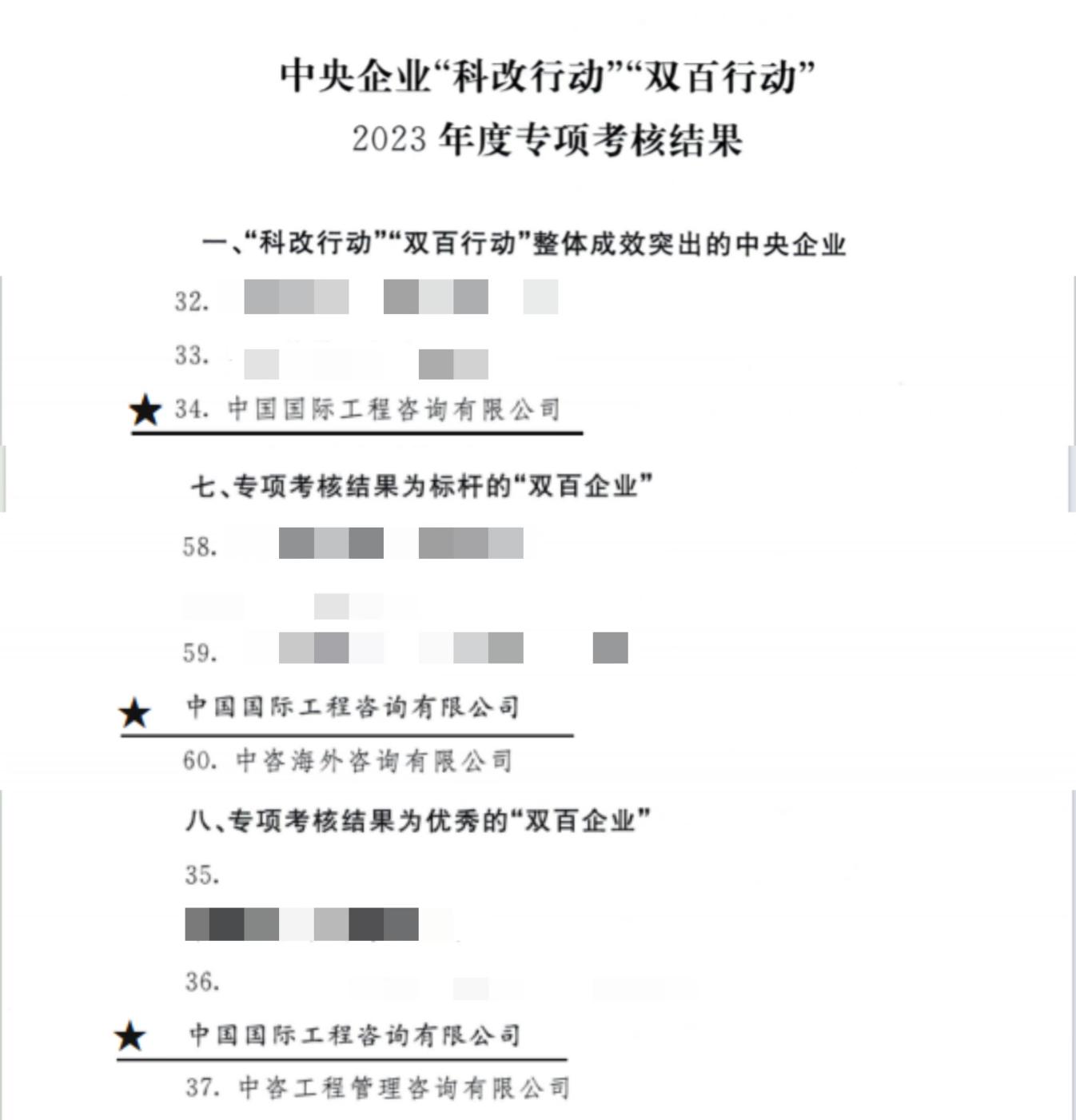 中咨公司在中央企業(yè)“科改行動(dòng)”“雙百行動(dòng)”2023年度專項(xiàng)考核中取得佳績(jī)
